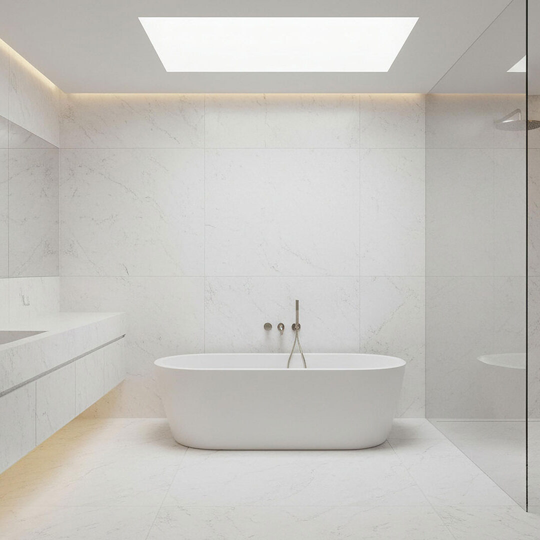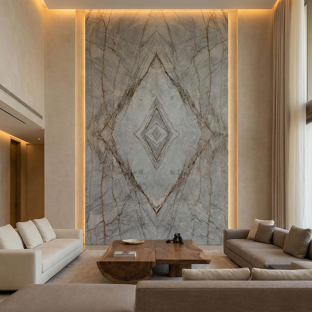 Large-format stone selected for seamless interiors and bold architectural designs.