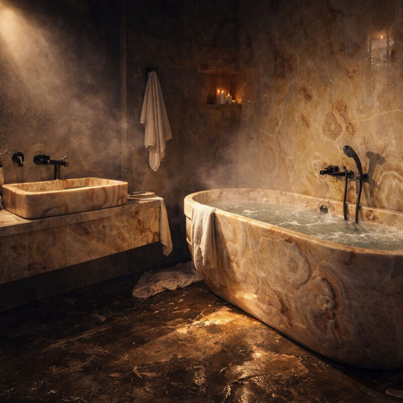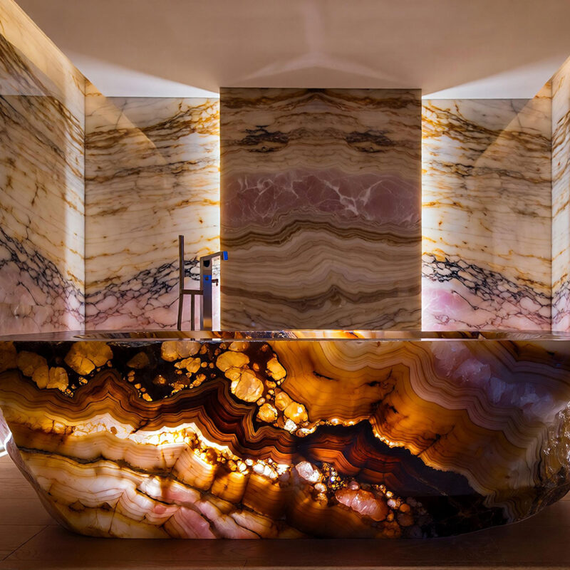 A translucent, luminous stone that transforms interiors with color and depth. Perfect for feature walls and dramatic lighting effects.
